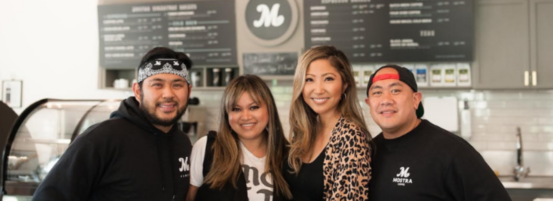 Beverly and Sam Magtanong and their business partners Jelynn Malone and Mike Arquines, above photo, laid off staff and postponed plans to expand their Mostra Coffee café and roastery in the San Diego area when pandemic restrictions first set in.