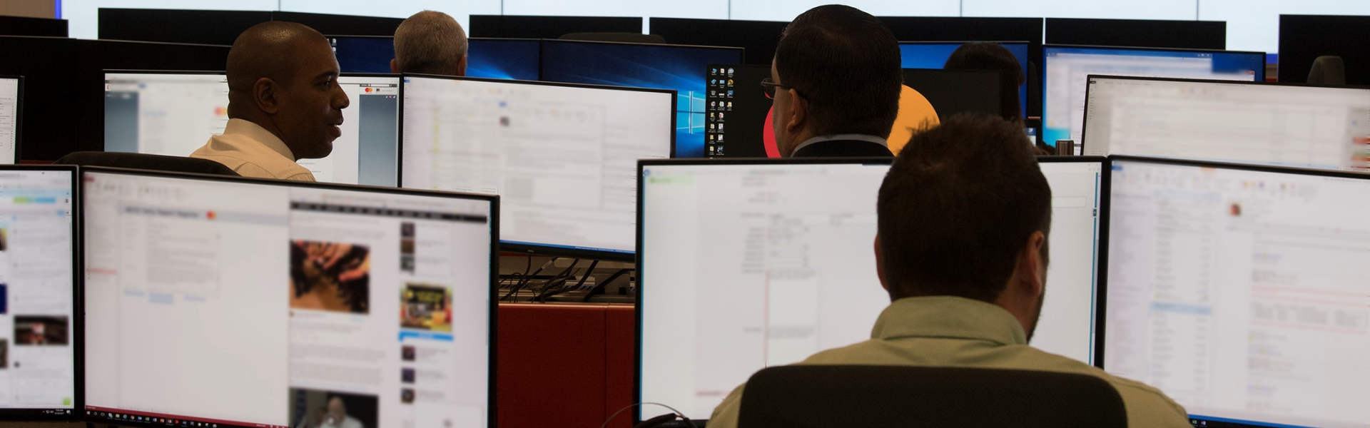 Top Photo: Mastercard’s O’Fallon, Missouri-based Fusion Center, where teams from across the company sit to speed response time and coordination efforts.