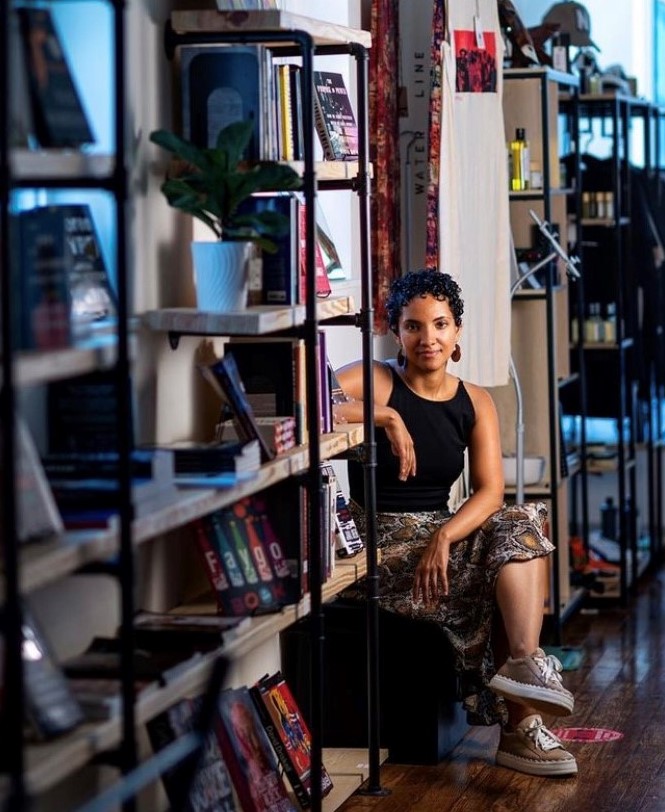Egypt Otis, above, opened Comma Booksore in Flint, Mich., during the pandemic. Research shows that Black-owned businesses took a significant hit at the start of the pandemic, but Black entrepreneurship is now outstripping that of other racial and ethnic groups. (Photo courtesy of Egypt Otis)