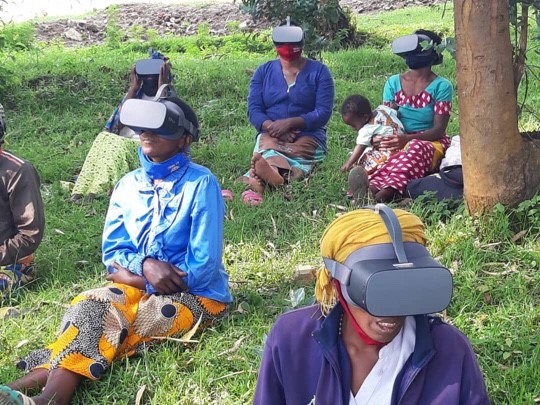 Women in Rwanda in a virtual reality training session created by XRGlobal, which is bringing the tech to microentrepreneurs in Brazil's favelas. (Photo courtesy of XRGlobal)