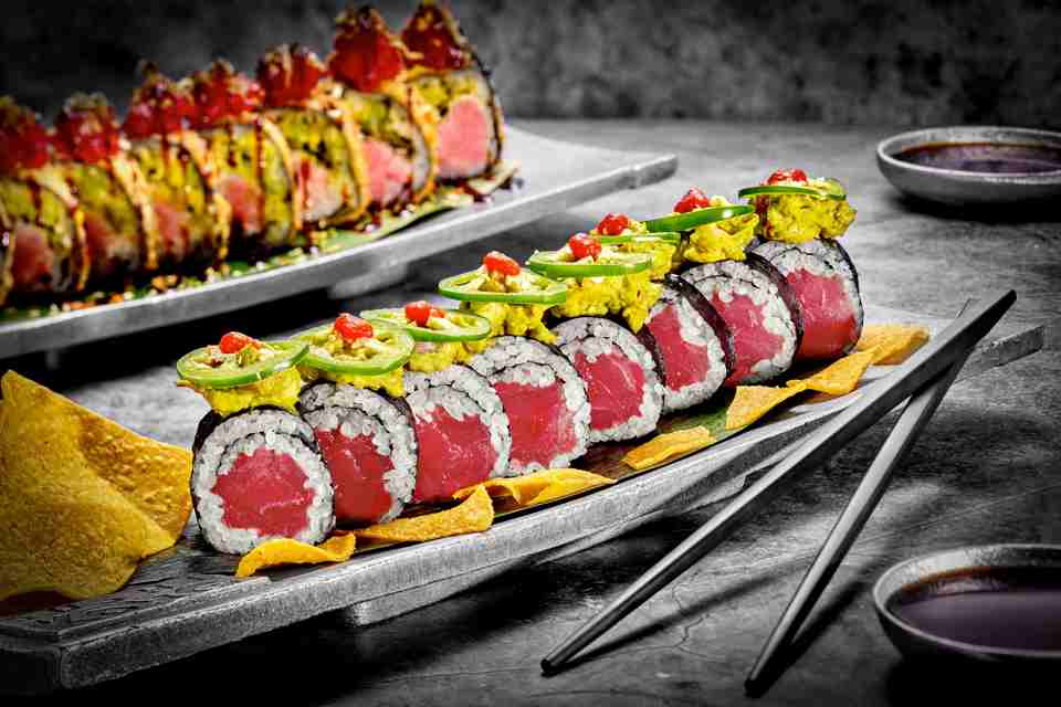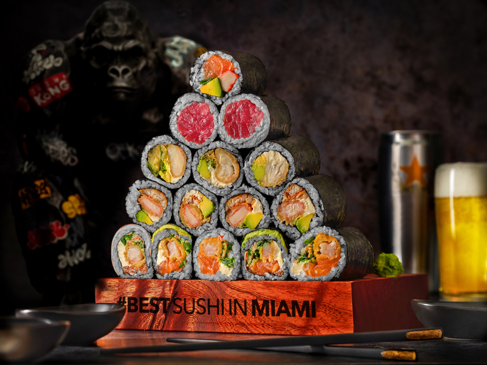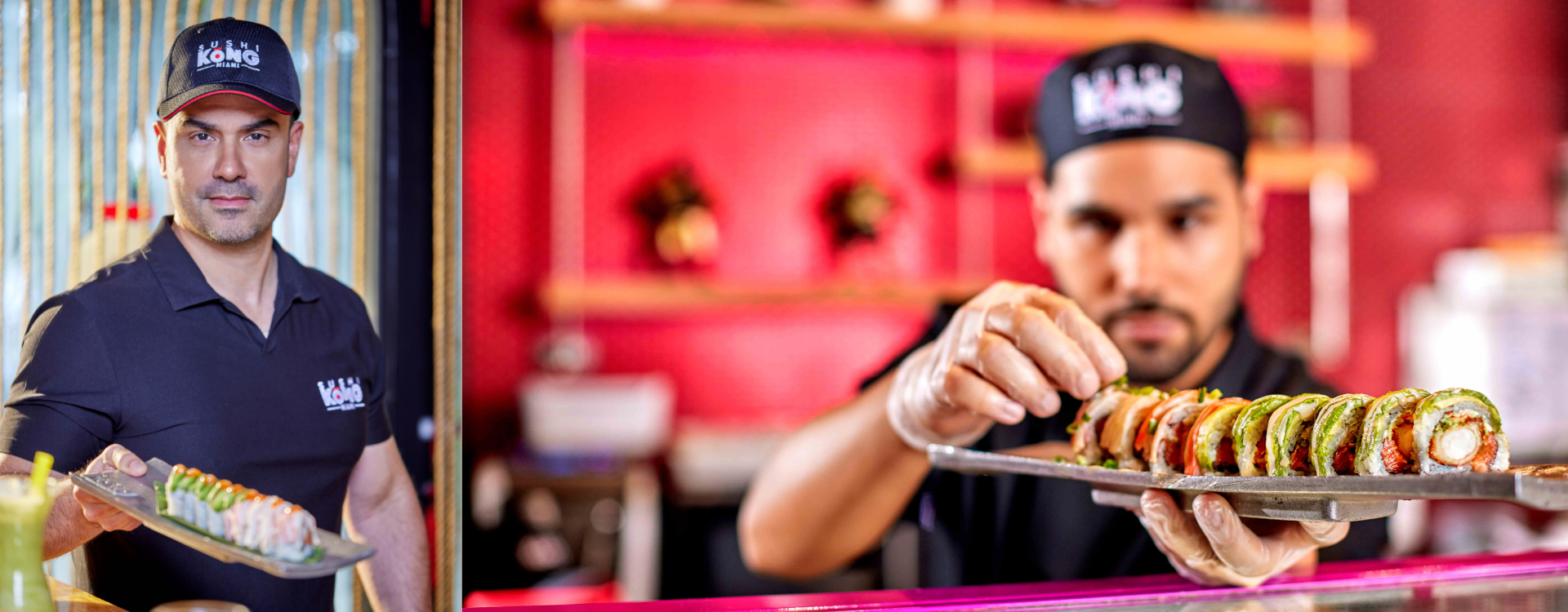 Banner photo: Javier Zamora, left, with offerings from Sushi Kong, his growing Miami-area restaurant business.