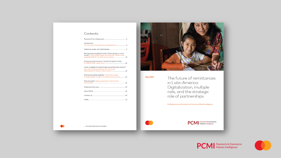 Mastercard partnered with PCMI, a payments industry market intelligence firm, to assess remittances in Latin America. The study markets include Mexico, El Salvador, Guatemala, Honduras, Brazil, Argentina, and Colombia compared against a broader global context. This research took place from October and December of 2023, which consisted of sourcing public data resources and conducting 10 in-depth interviews with six companies inclusive of banks, traditional and digital-only money transfer operators (MTOs), retailers, technology enablers, and Mastercard executives.
